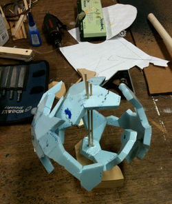 ![]() Original styrofoam patterns for the inner Geo (this piece had no original drawing) | ![]() | ![]() Addition of outer Geo |