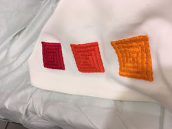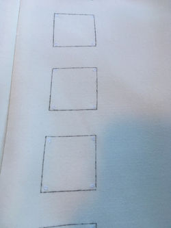 ![]() I also had to learn to embroider, as I'd never done it before. This method didn't pan out :) | ![]() After a few tries, I found a method that worked quite well. Now it was time to really get started... | ![]() I made stencils of the squares, w/proper sizes and spacing, that I used to draw the pattern onto the dress. I didn’t manage to get photos of them (oops), but they were just cut-out of poster board (or similar) from images I made in PS. I did tests to find out which type of marker was the most water-resistant & managed to find one that didn’t budge even with hot water and soap. |