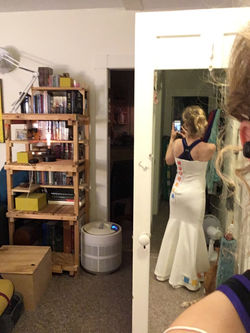 ![]() First, I had to figure out the design (none of these were the one). This image is from the website (Macy's). Note how, on the 6ft tall model, the dress is an appropriate length. | ![]() Top left is the final design I ended up using | ![]() I ordered the dress online (Macy's, $300; pretty good for a wedding dress :). When it first showed up, it was a little big lol. |